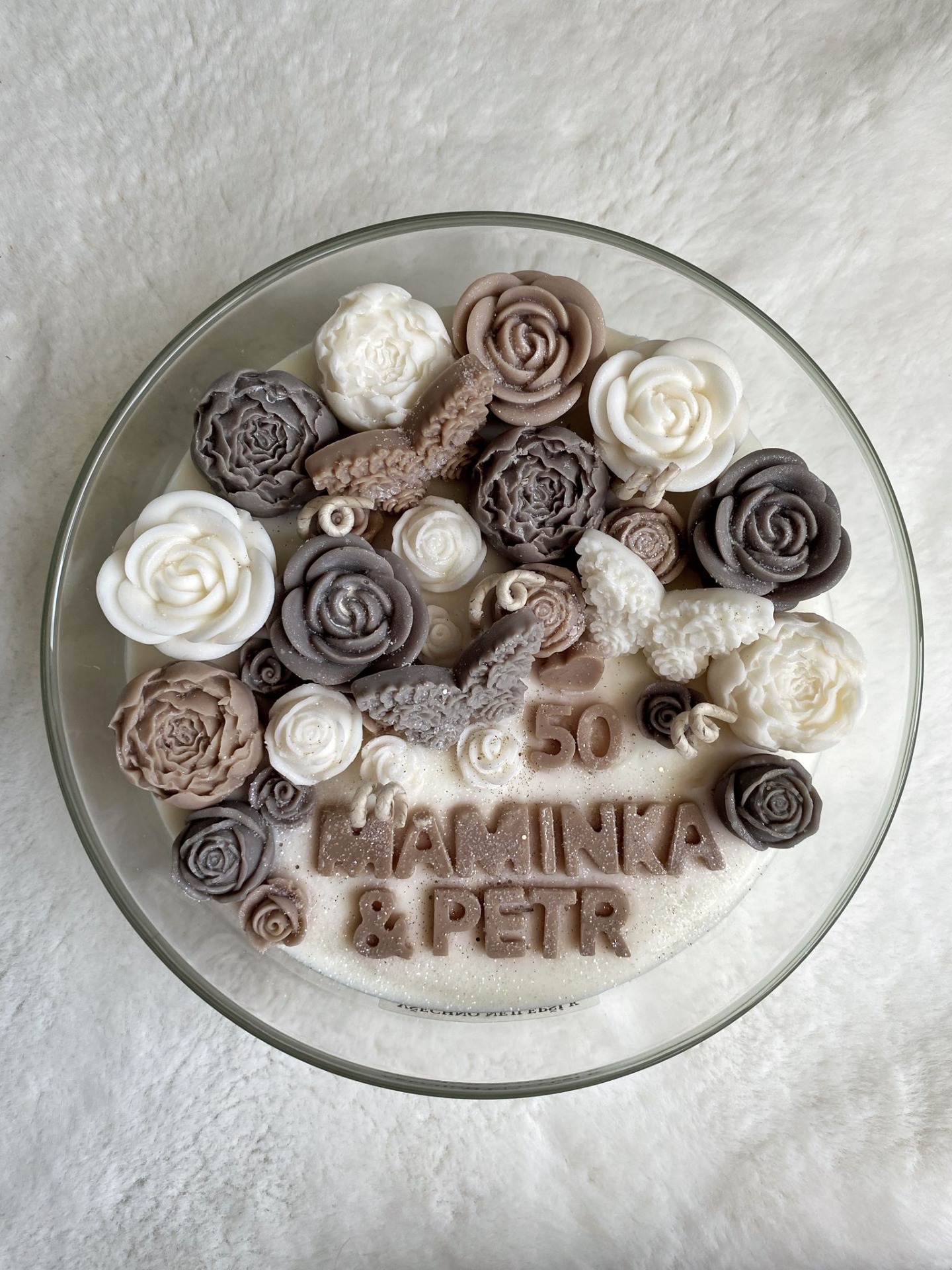 - UPOZORNĚNÍ: podkladní vrstva, na kterou jsou umístěny květy, je vždy v přírodní smetanové barvě sójového vosku!