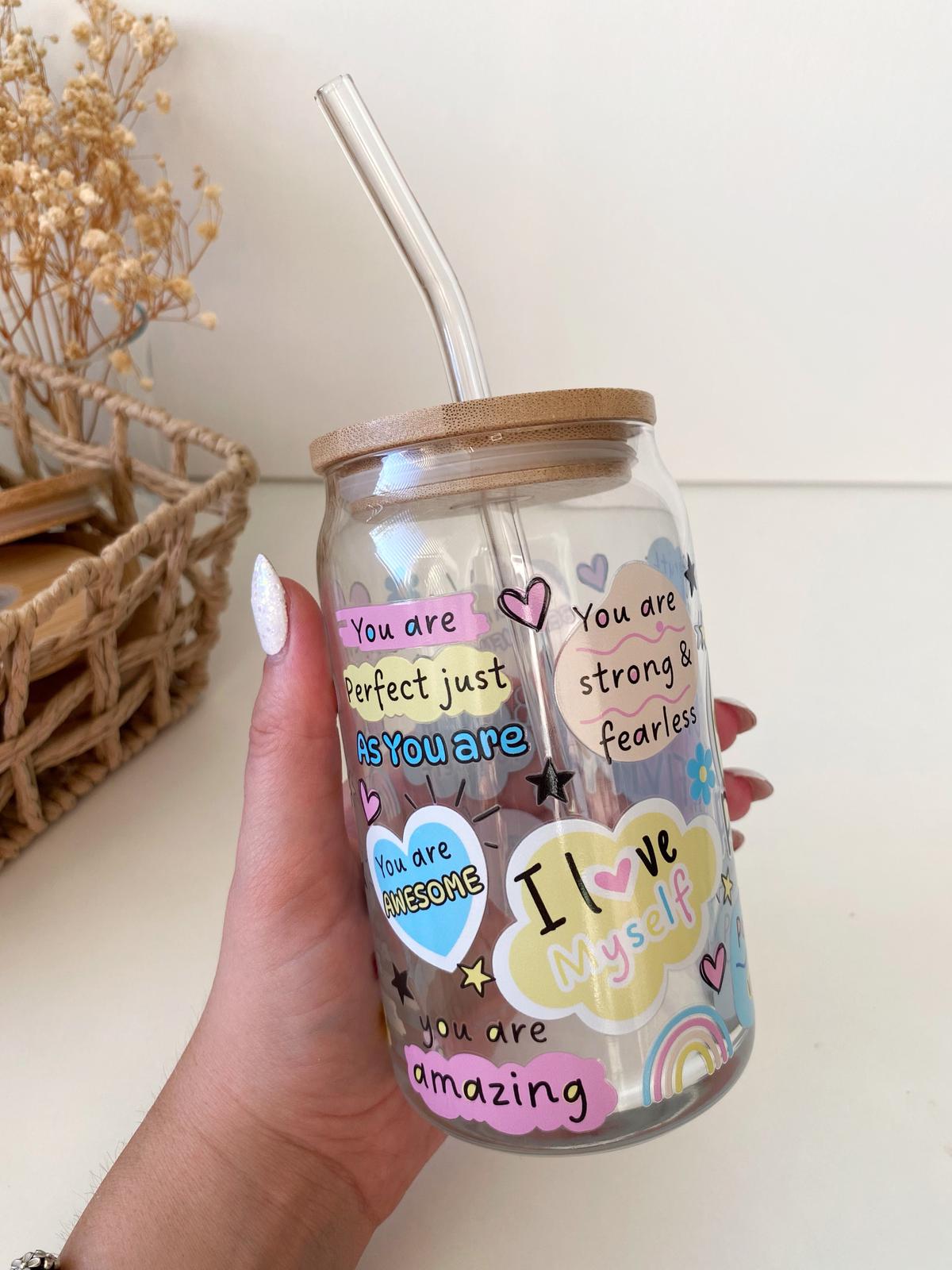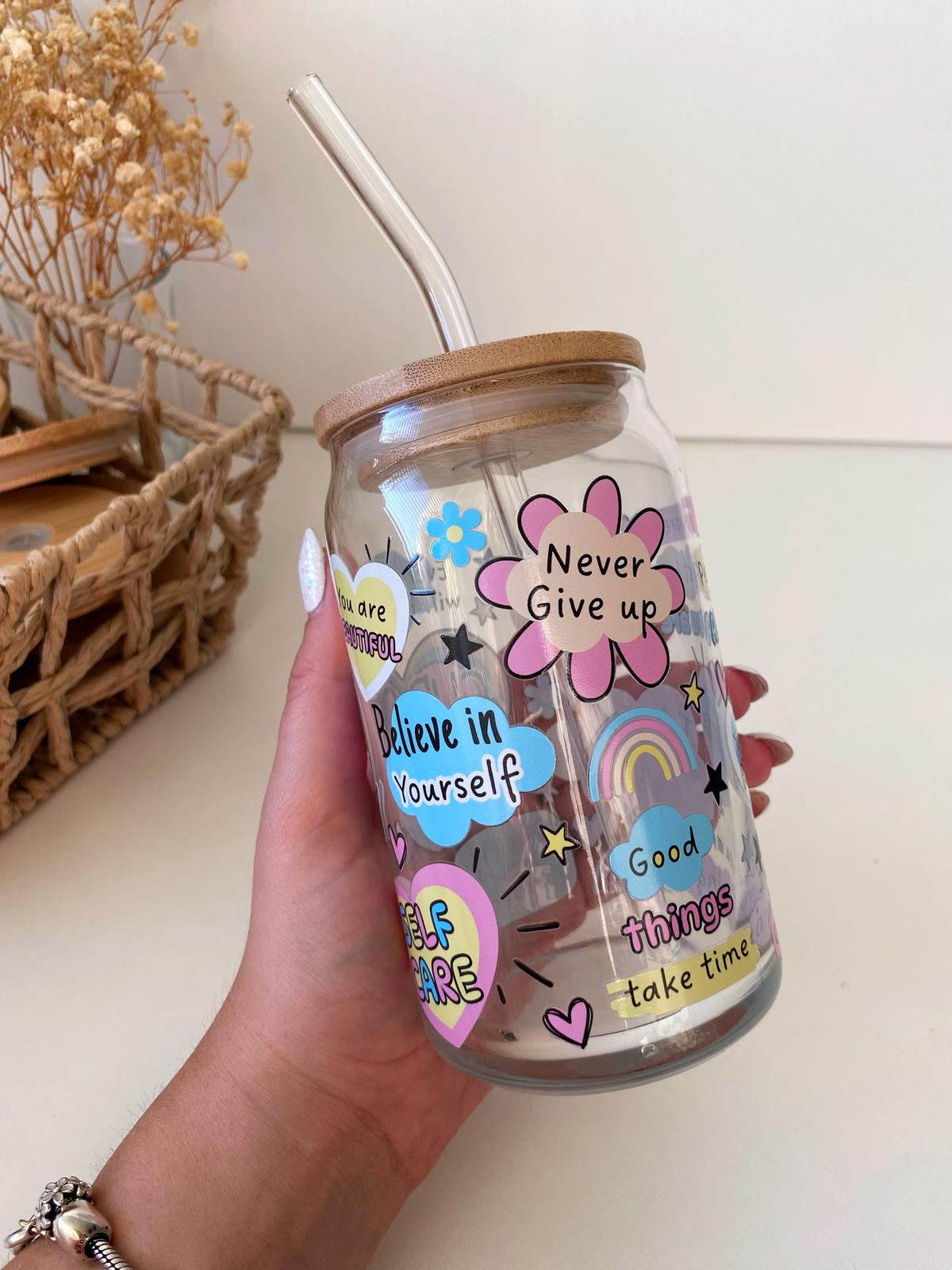 Designová sklenička s motivem – ideální na limonádu, smoothie i ledovou kávu.