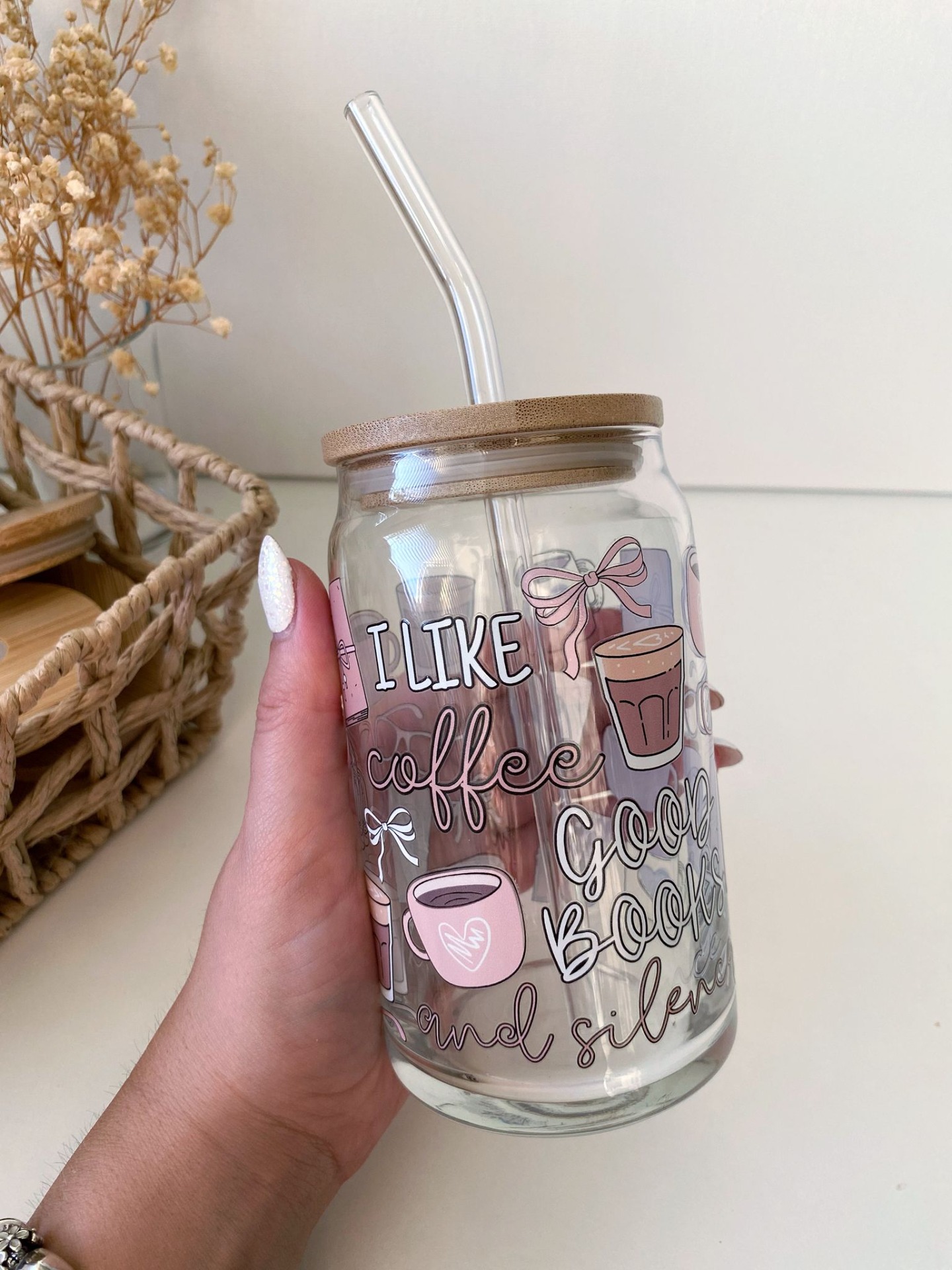 Designová sklenička s motivem – ideální na limonádu, smoothie i ledovou kávu.